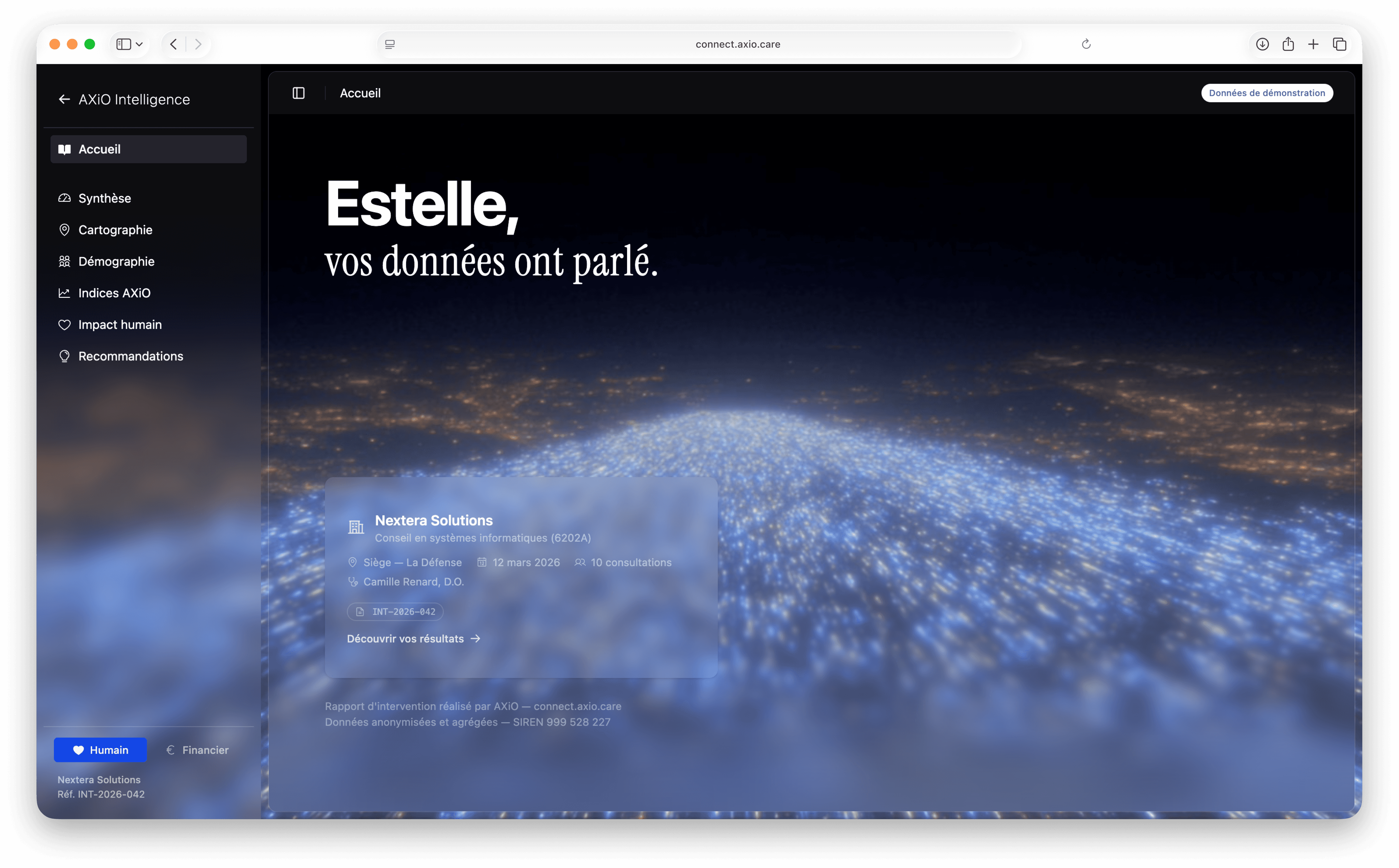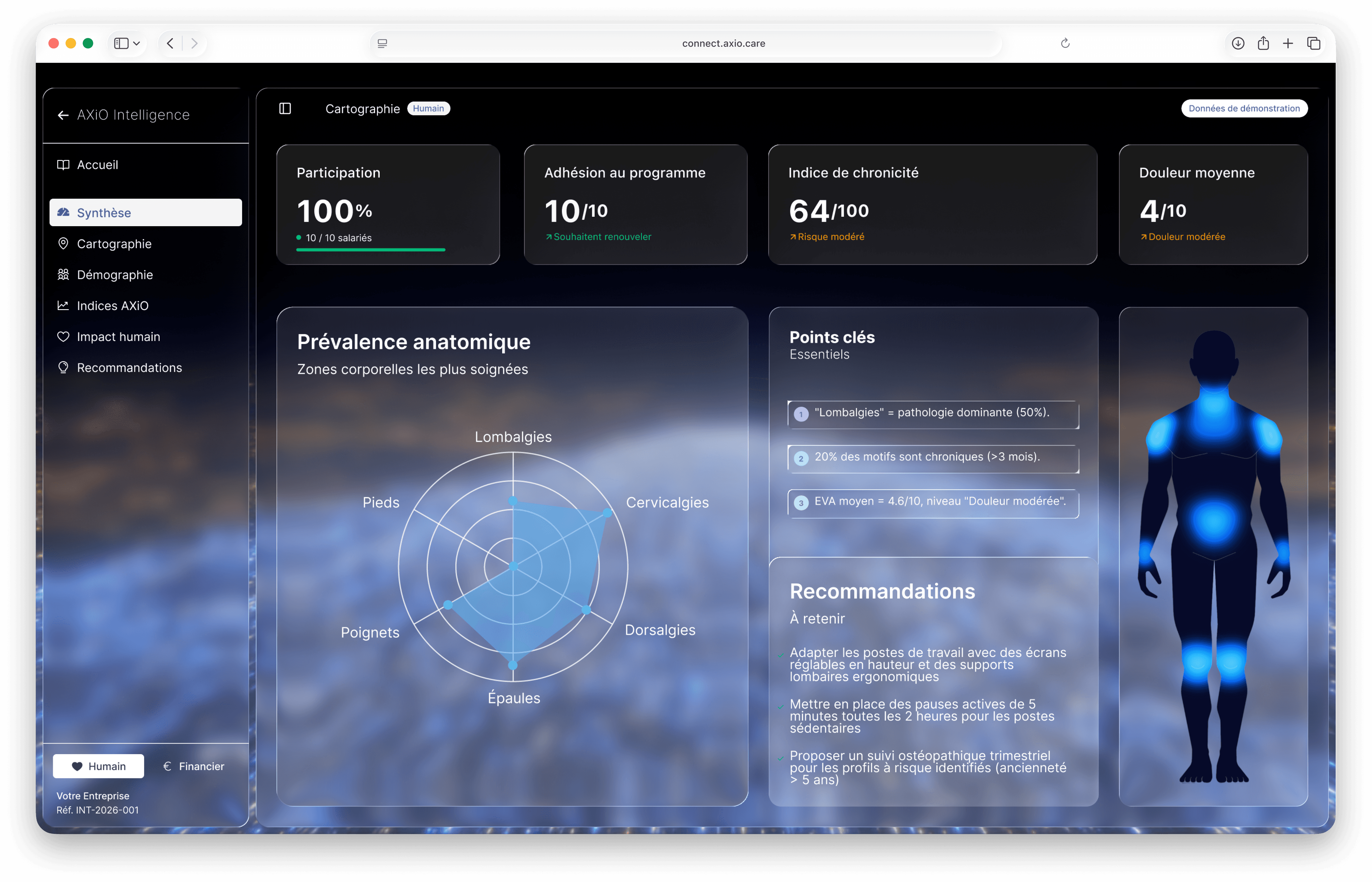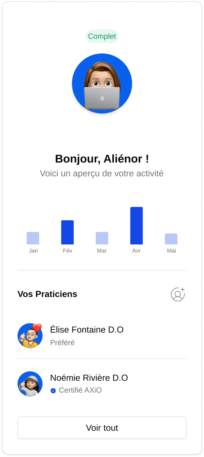 AXiO remplace l'intuition par l'intelligence — des ostéopathes certifiés, un rapport d'impact structuré – le tout livré en 48 heures.
